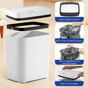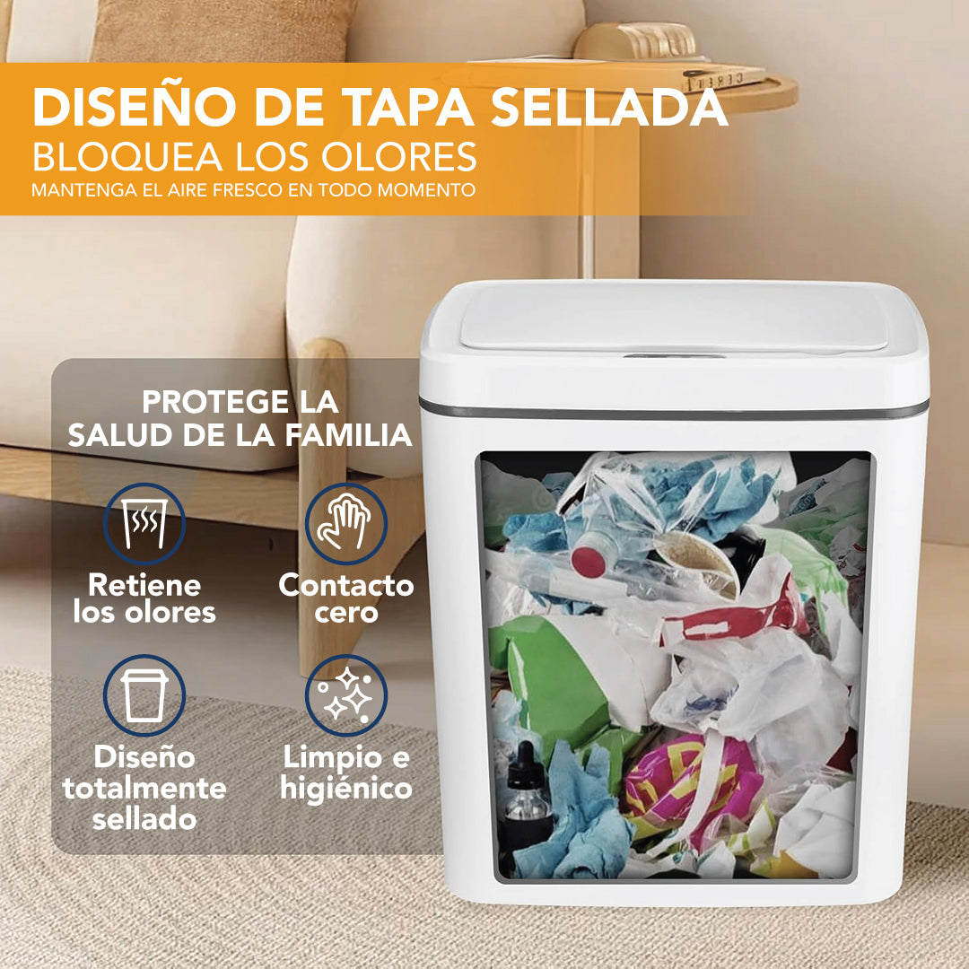 ✅ Gestión eficiente de residuos: Te permite optimizar la gestión de tus residuos de manera eficiente. El sensor integrado detecta automáticamente cuando depositas la basura y abre la tapa, lo que facilita el proceso y evita que tengas que tocar el basurero con las manos sucias.
