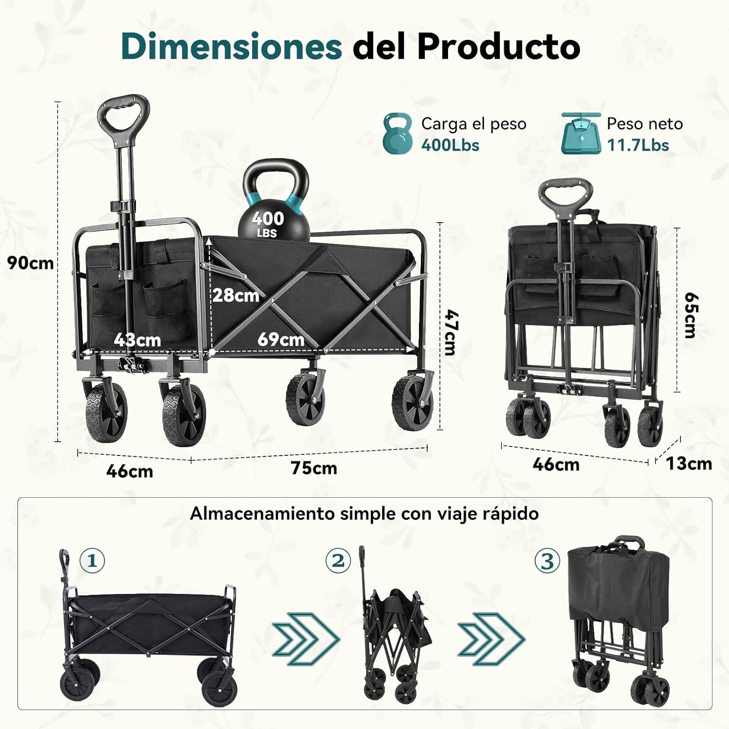 Perfecto para transportar cargas a corta distancia, este cochecito es ideal para actividades como compras, jardinería, campamentos al aire libre y eventos deportivos, facilitando tus desplazamientos diarios. -