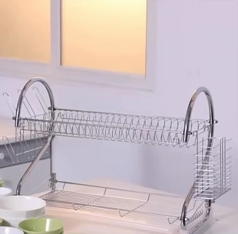 En este escurridor podrás colocar desde vajillas y tazas, cubiertos, lo que necesites que se sequen de manera rápida. Tiene una bandeja de goteo incorporada que evita que el agua escurrida caiga sobre la encimera o el suelo de la cocina.