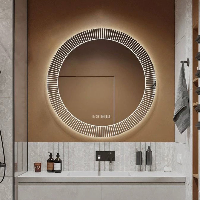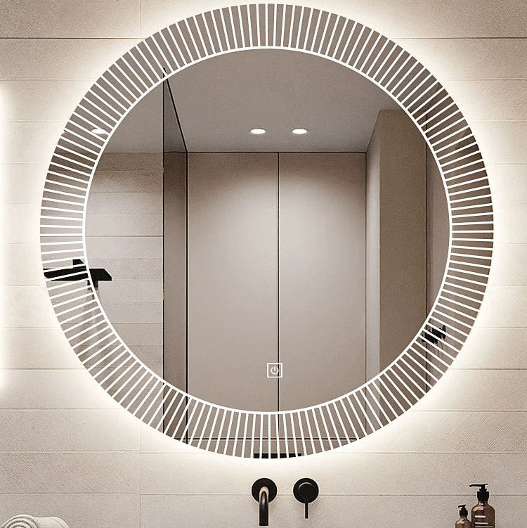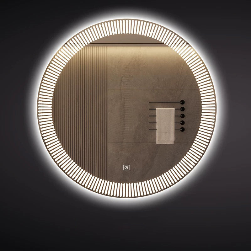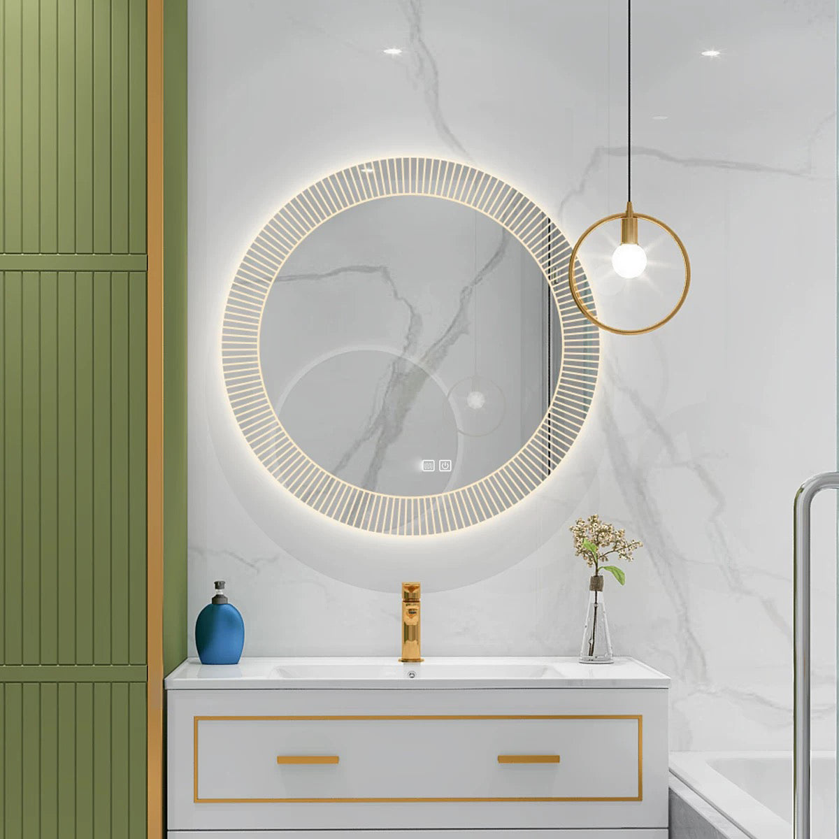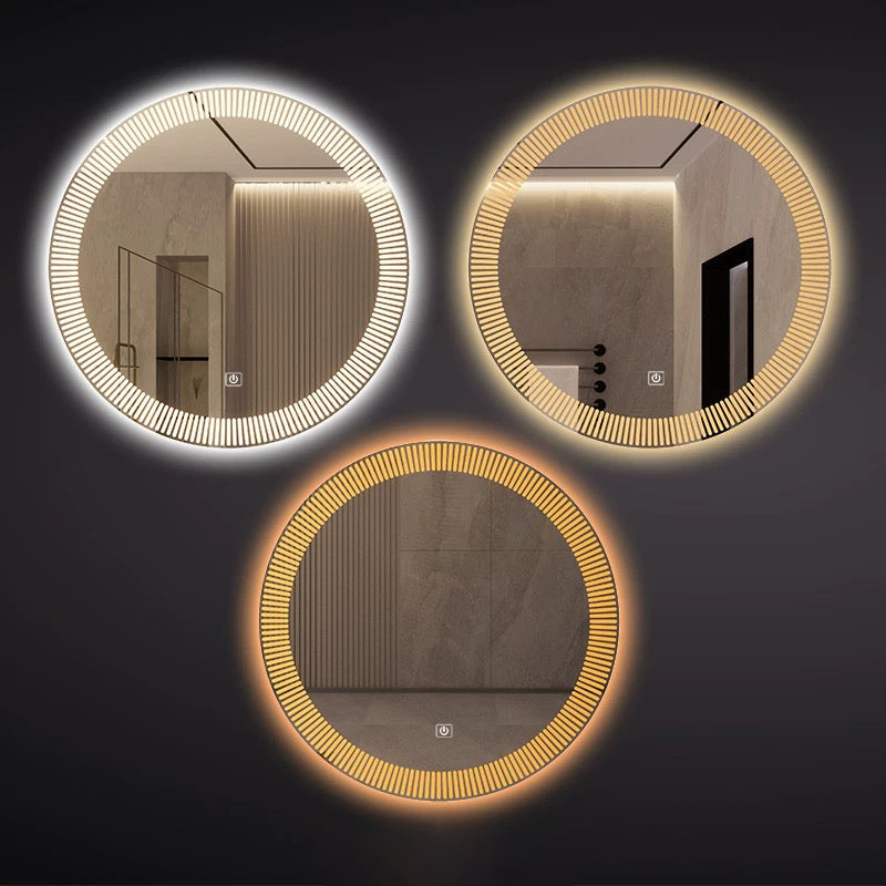 - Luz inteligente de 3 colores: el espejo de baño redondo grande tiene 3 modos de iluminación, puedes cambiar entre blanco cálido, luz natural y blanco frío. Además, puedes presionar para ajustar el brillo de las luces a un nivel cómodo.