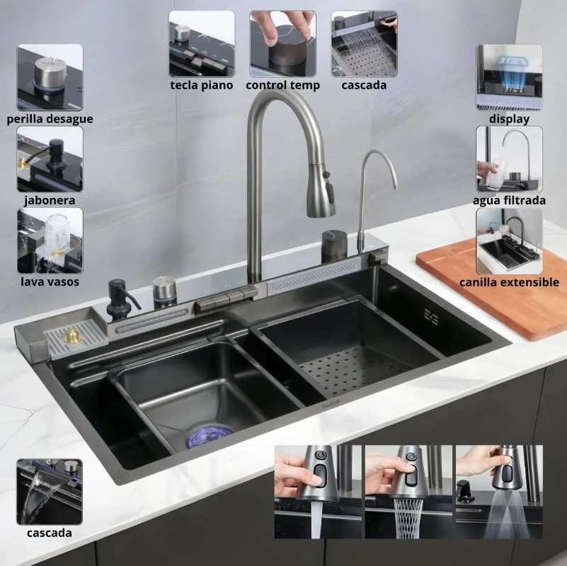 Gracias a su diseño funcional, este fregadero permite organizar mejor el área de lavado, facilitando las tareas diarias y aprovechando al máximo cada centímetro disponible. -