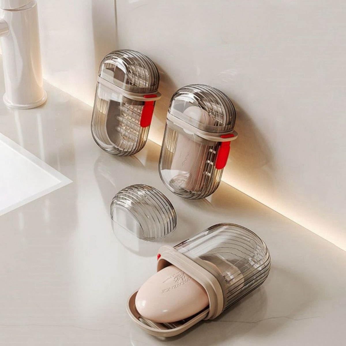 Gracias a su tapa con ranura de sellado hermética, la jabonera ofrece un cierre seguro que evita derrames. Puedes transportarla en tu mochila o maleta sin preocuparte de que se abra accidentalmente o se filtre el contenido. -