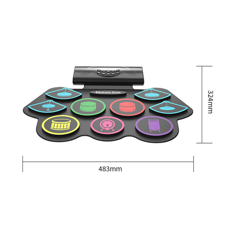 Este set de batería electrónica portátil presenta un diseño enrollable, hecho de goma de silicona duradera y material ABS. Con funcionalidad recargable, Bluetooth, soporte MIDI y doble altavoz, ofrece conectividad versátil para entrada de MP3 y se empareja con teléfonos, tabletas o PC. Ligero con 1.7 kg y compacto con dimensiones de 45*41*9 cm, es perfecto como regalo tanto para niños como para adultos. Incluye 10 ritmos, 10 demos y 5 kits de batería, todo empaquetado en una caja de color con impresión de logotipo personalizado disponible.