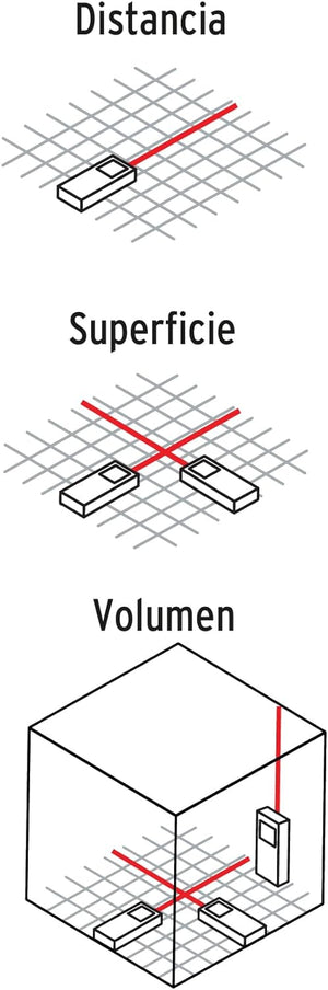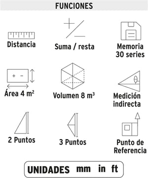 - Memoria 30 series, Rosca de 1/4" (6.5 mm) para uso con tripie, modo de medición, área y volumen