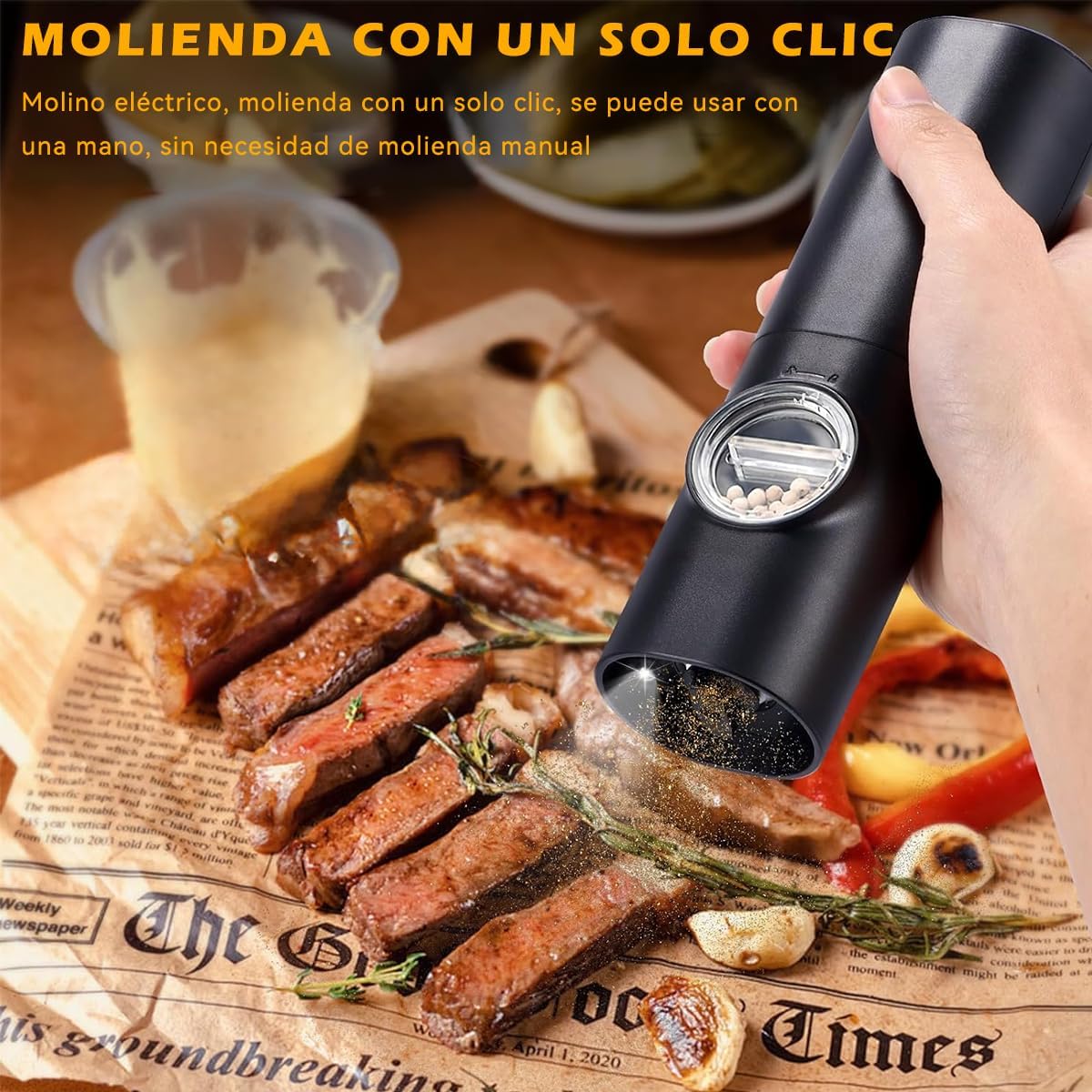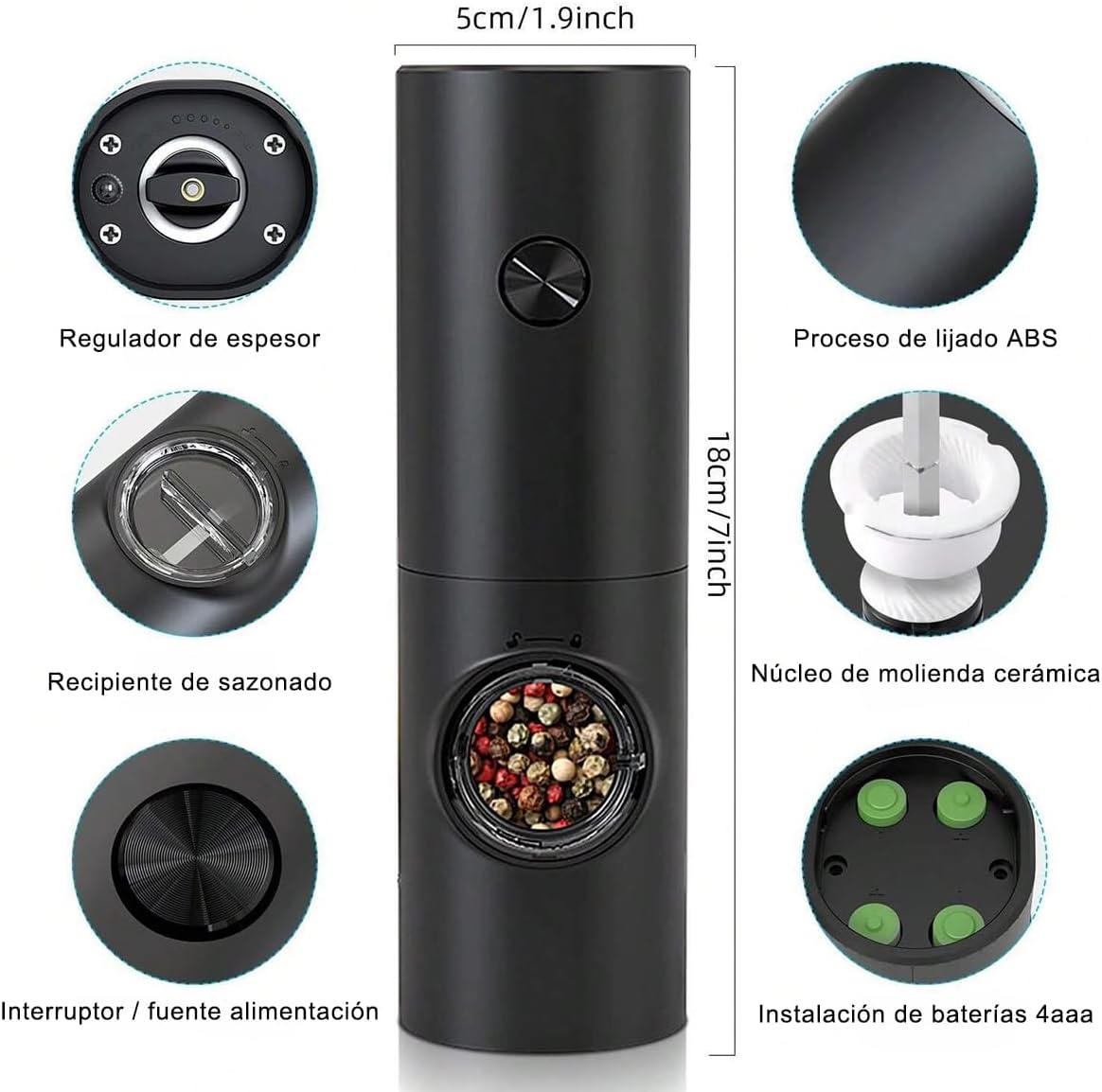 Capacidad: Ideal para pimienta, sal marina, clavos, semillas de cilantro, chili seco, entre otros