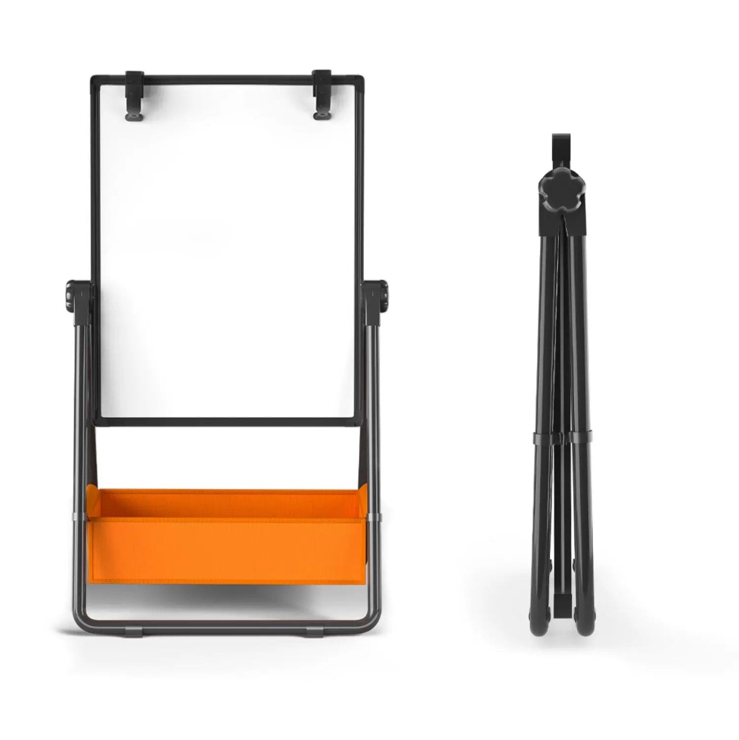 Altura ajustable y rotación 360°: Soporte de acero de alta resistencia, regulable entre 17" y 46.5", con pizarra giratoria para mayor comodidad.