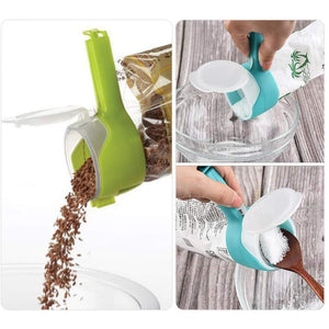 - Fácil de usar: Se fija a bolsas de plástico o papel, permitiendo sellarlas y verter alimentos con comodidad.