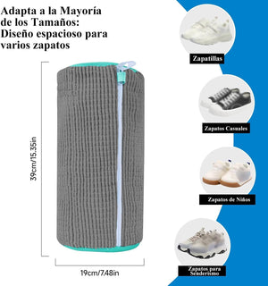 Fácil de Usar: Solo coloca los zapatos, cierra la cremallera y lava. Secado rápido con gancho para colgar.