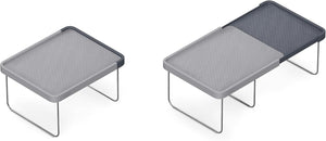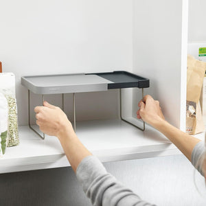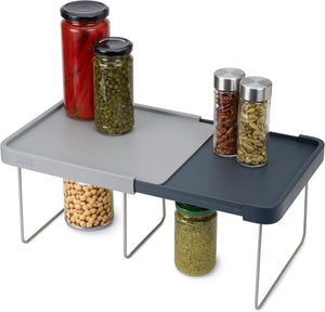 Diseñado para crear almacenamiento adicional en armarios y superficies, este estante es ideal para mantener platos, frascos, especias u otros artículos organizados y fácilmente accesibles. - Adaptable y Funcional: