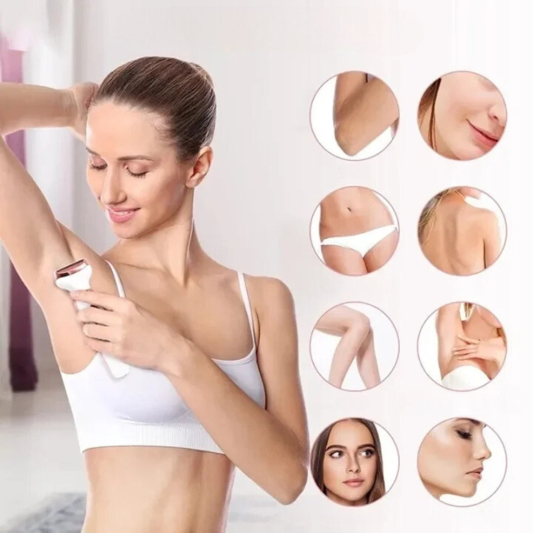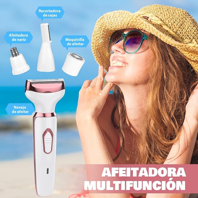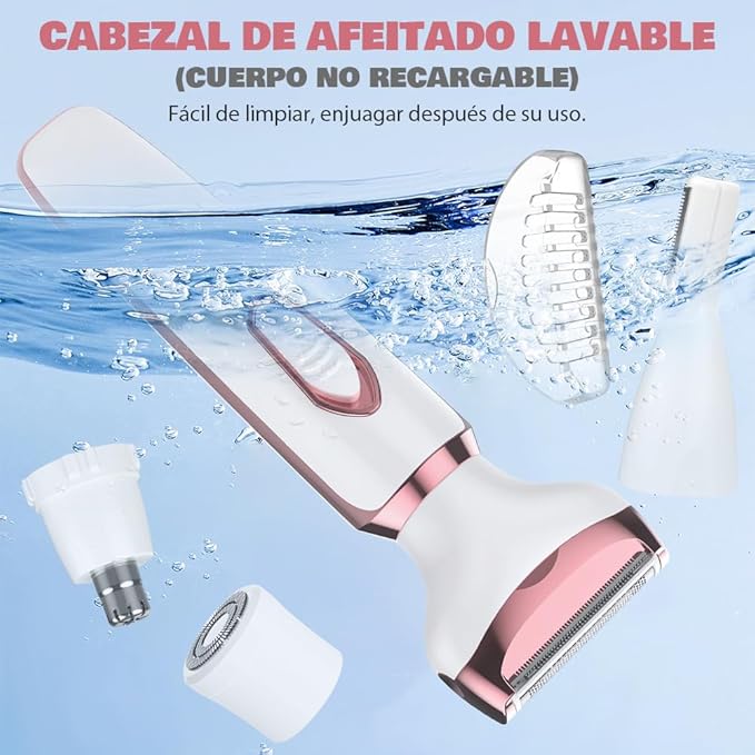 - Kit 4 en 1: Incluye 4 cabezales intercambiables para eliminar vello en cara, cuerpo, nariz y más.
