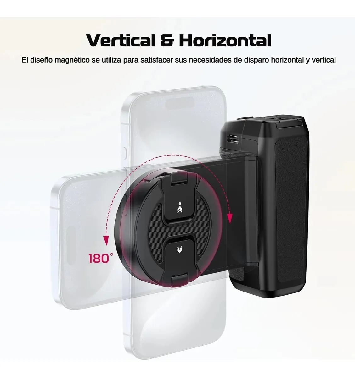 · Diseño práctico: Cambio rápido entre grabación vertical y horizontal; mango ergonómico y antideslizante que estabiliza el teléfono.